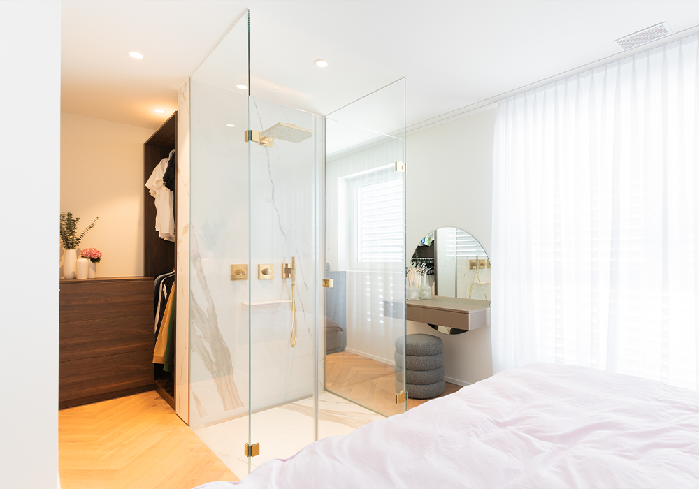 Auch das Badezimmer ist von dieser Entwicklung betroffen, wenn auch in unterschiedlicher Ausprägung. Wo es früher klar abgetrennt und rein funktional war, wird es heute häufiger als Teil eines größeren privaten Bereichs gedacht – etwa in Verbindung mit Schlaf- oder Ankleidezonen. Daraus entstehen Badkonzepte, die weniger technisch und stärker wohnlich wirken.