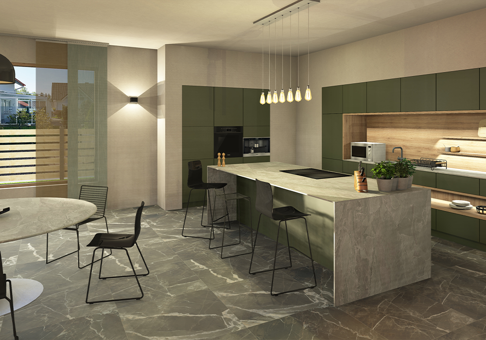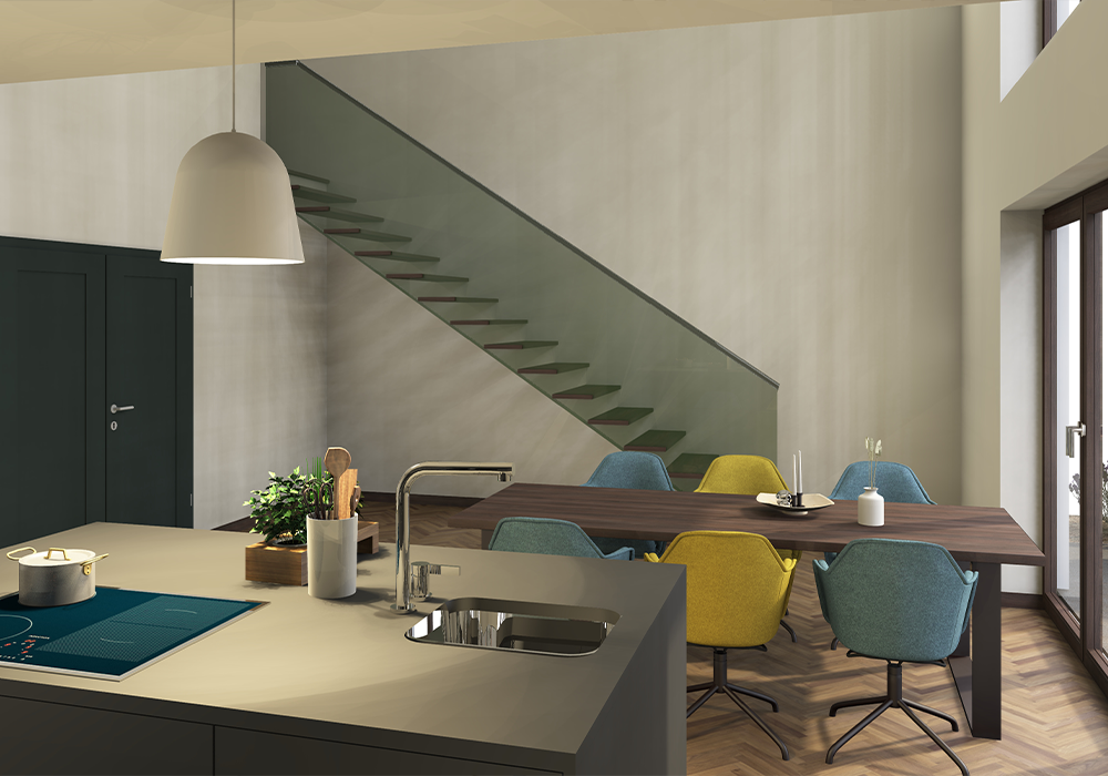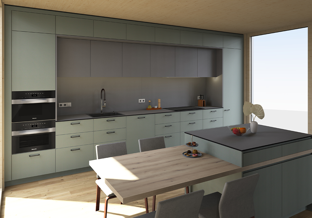 - Küche und Wohnraum verschmelzen zu einem kommunikativen Mittelpunkt