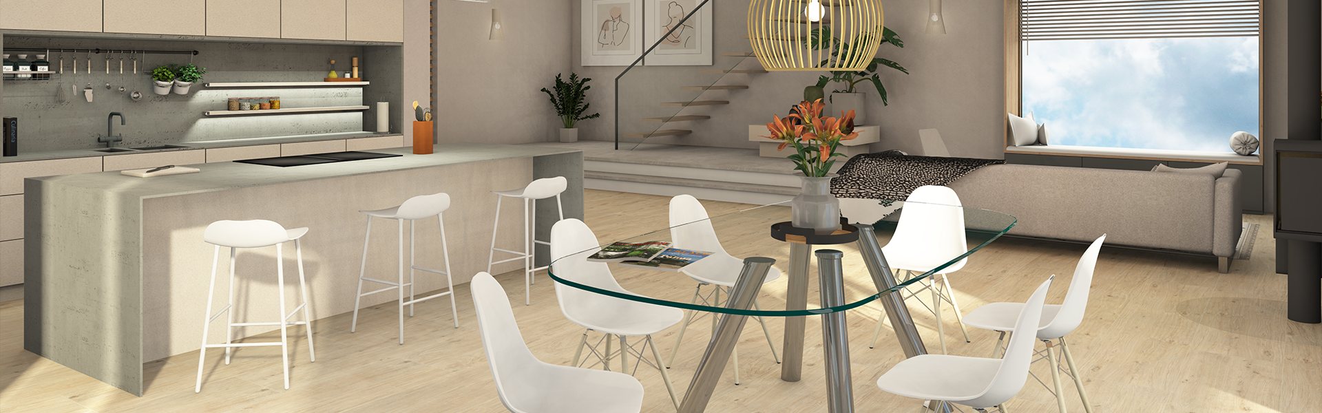 - Küche und Wohnraum verschmelzen zu einem kommunikativen Mittelpunkt